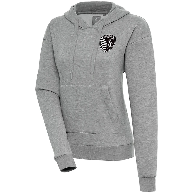 Women's Antigua Heather Gray LAFC Logo Victory Full-Zip Hoodie