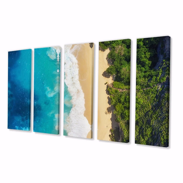 Blue Waves on Sandy Beach Canvas Wall Art - 4-5 Panels