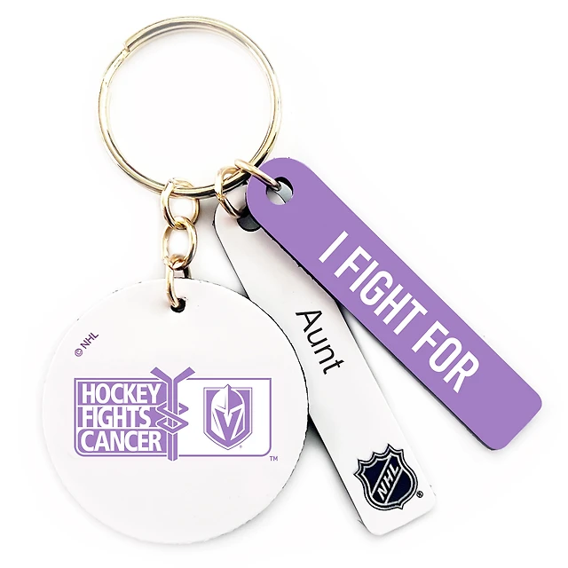White Vegas Golden Knights Hockey Fights Cancer Personalized Ribbon Keychain