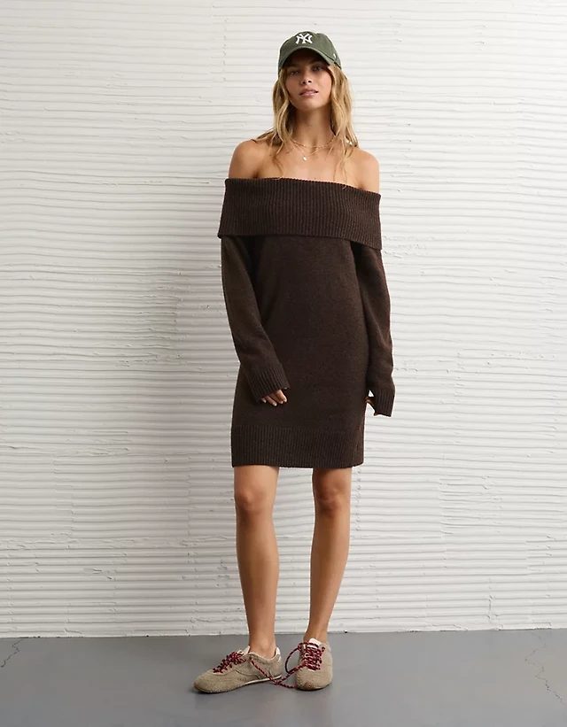 Heavenlyarn™ Off Shoulder Mini Sweater Dress