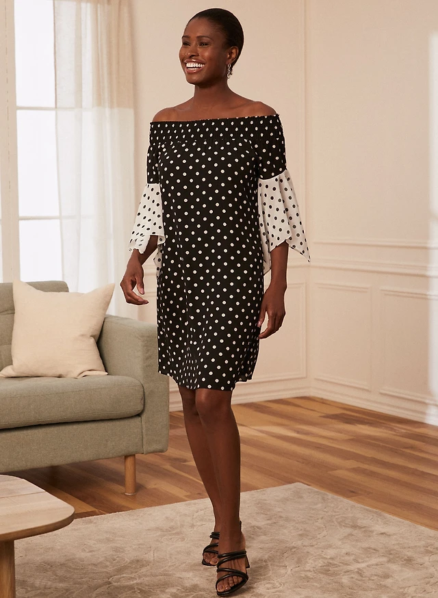 Betsy & Adam - Mesh Insert Off-the-Shoulder Dress