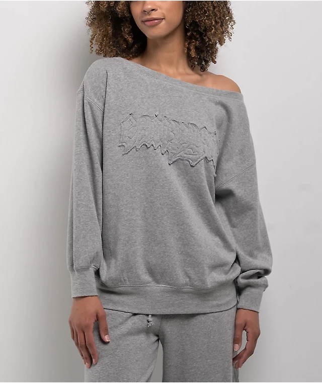 Empyre Kasey Off Shoulder Grey Boxy Crop T-Shirt