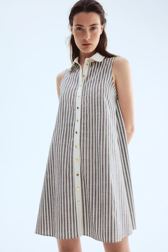 Linen-Blend Button-Front Dress