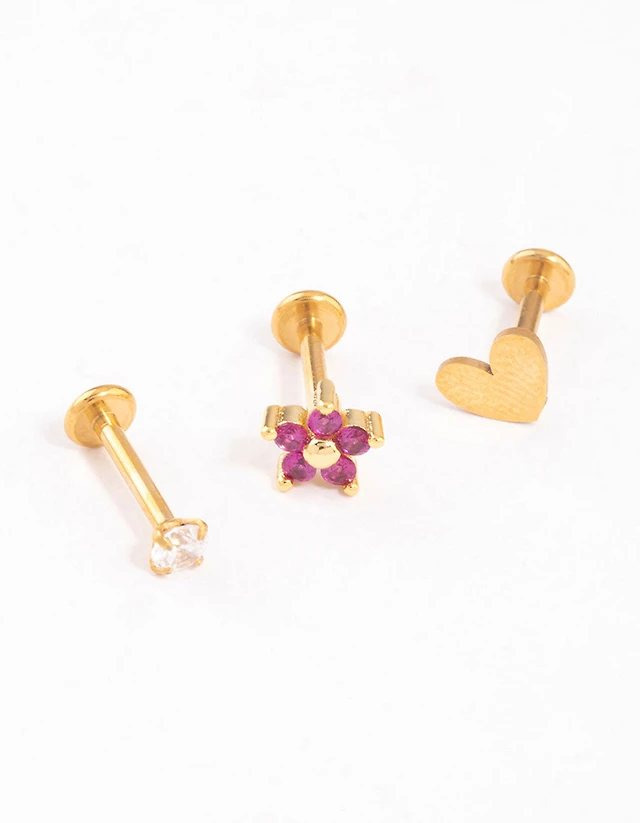 Mixed Metal Surgical Steel Plain & Twist Nose Ring 4-Pack
