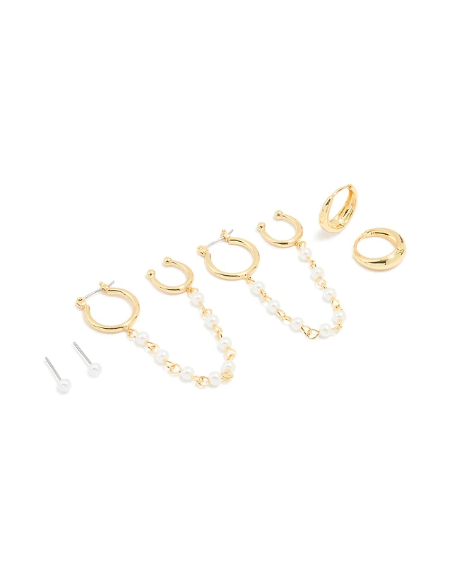 Gold Plated Cubic Zirconia Stud & Chain Huggie Earrings 4-Pack