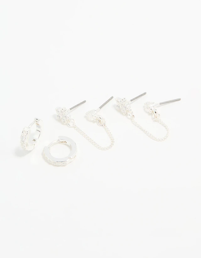 0.10 CT. T.W. Diamond Star Trio with Offset Accent Celestial Necklace in Sterling Silver