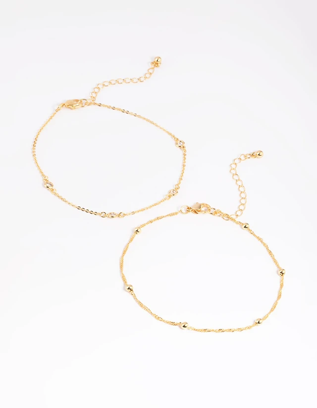 Gold Chain & Pearl Bracelet Anklet 4-Pack