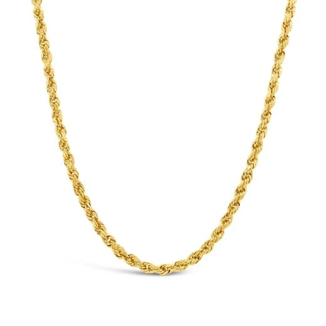 14K Yellow Gold 24" Semi-Solid Diamond Cut Rope Chain