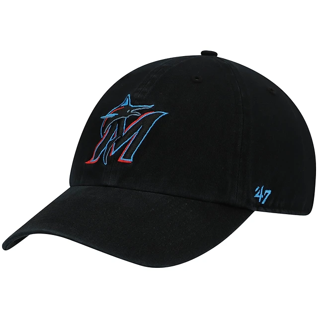 Men's '47 Black Miami Marlins Clean Up Adjustable Hat