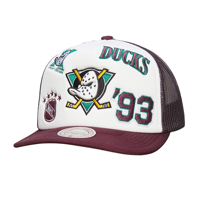 Men's Mitchell & Ness White/Purple Anaheim Ducks Gridlock Trucker Adjustable Hat
