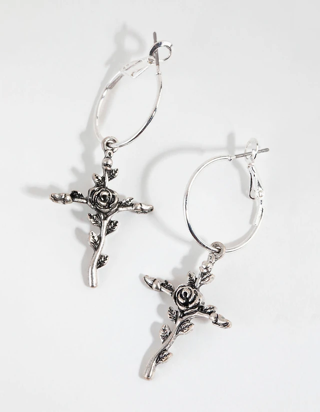 Antique Silver Rose Vine Ross Earrings