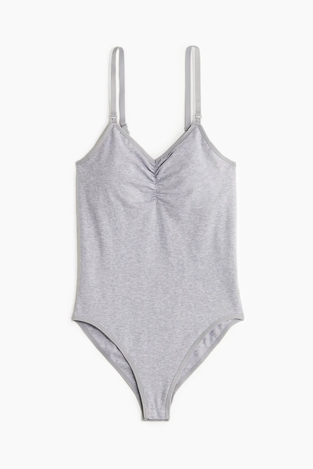 Ribbed Modal and Lace Trim Bodysuit with Shelf Bra
