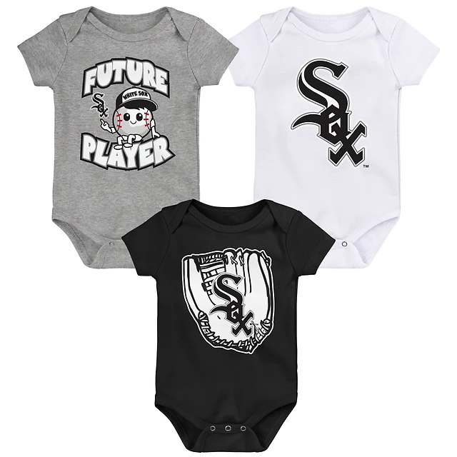 Newborn & Infant Heather Gray/Black/White Chicago White Sox Minor League Player Three-Pack Bodysuit Set