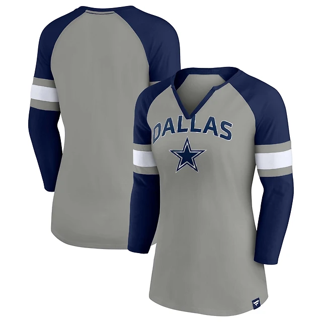 Women's Fanatics Gray/Navy Dallas Cowboys Team Arch Raglan 3/4-Sleeve Notch-Neck T-Shirt