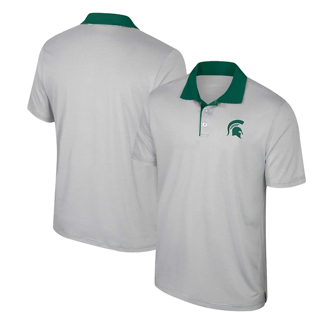 Men's Colosseum Gray Michigan State Spartans Big & Tall Tuck Striped Polo