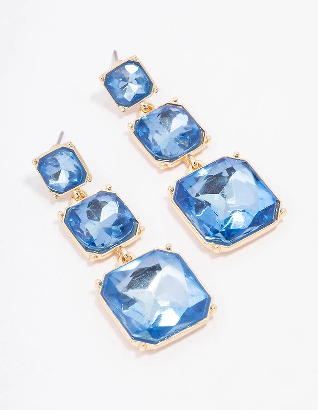 Sparkling Square Blue Halo Stud Earrings