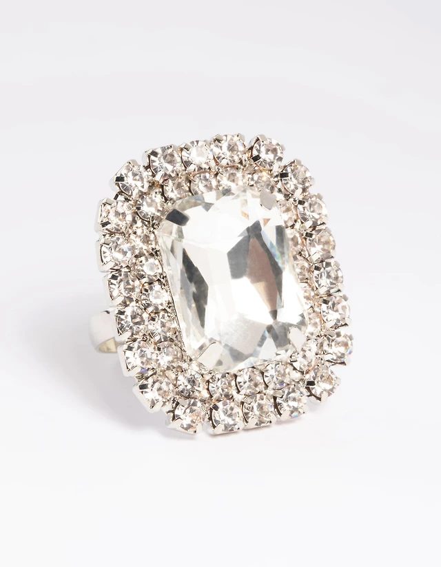 Square Opal Three Stone Ring 10K Gold with Diamond Accents