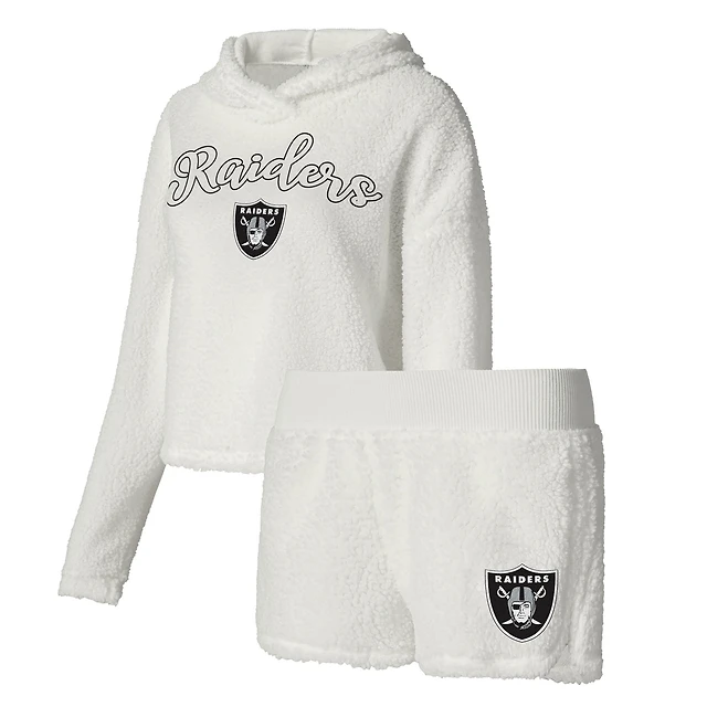 Women's Concepts Sport White Las Vegas Raiders Fluffy Pullover Sweatshirt & Shorts Sleep Set