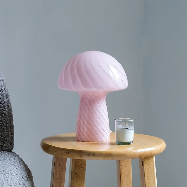 Glass Mushroom Table Lamp - Bubblegum Stripes