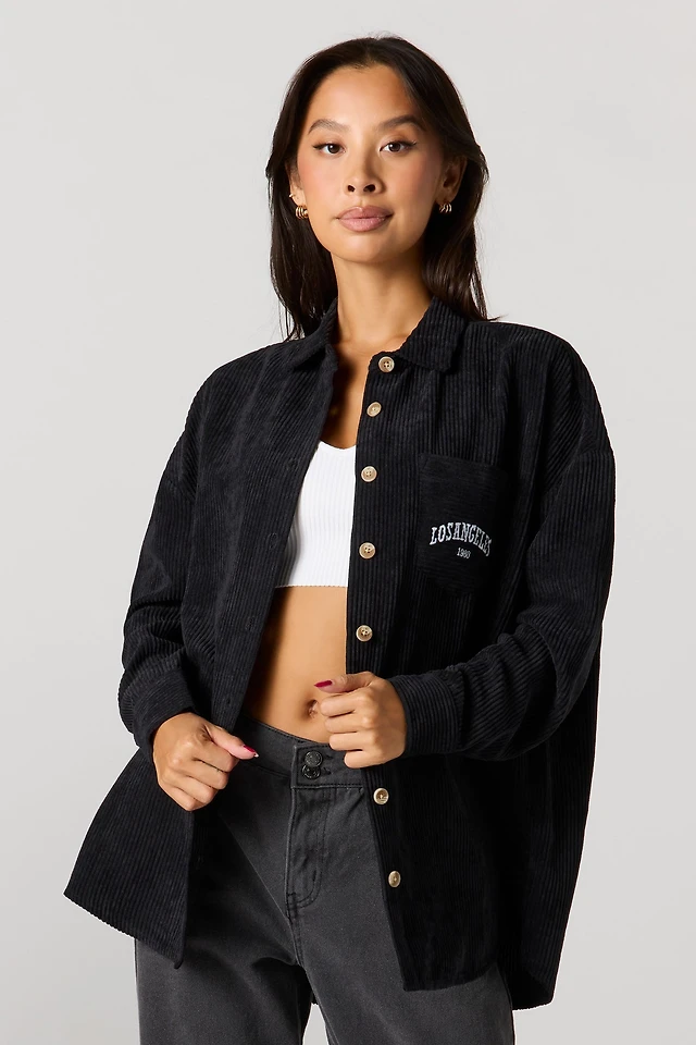 Corduroy Button-Up Collared Top