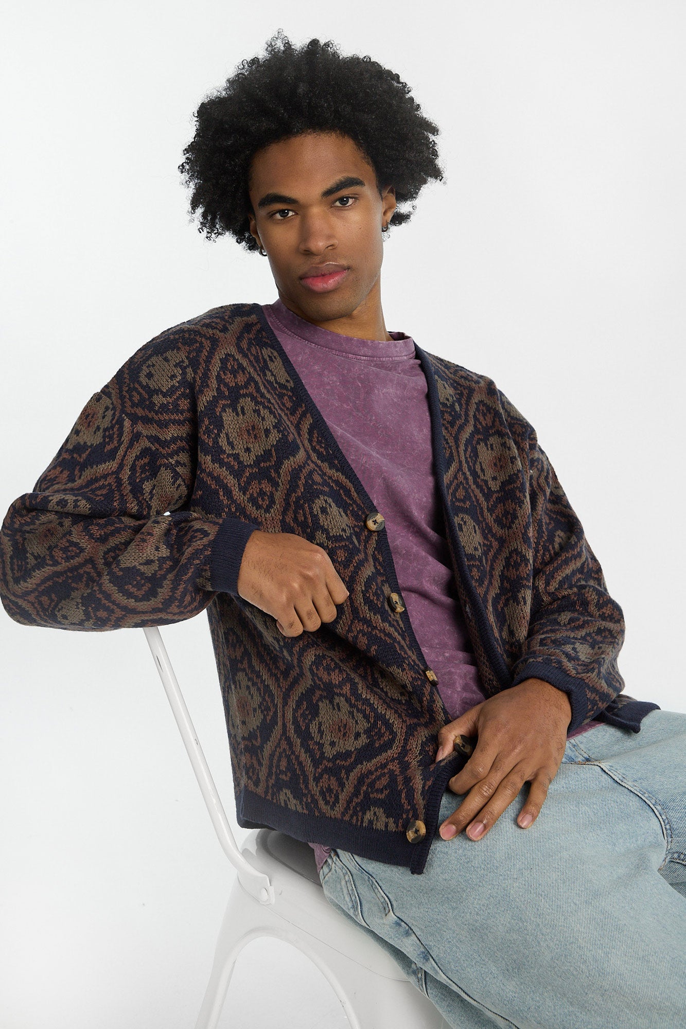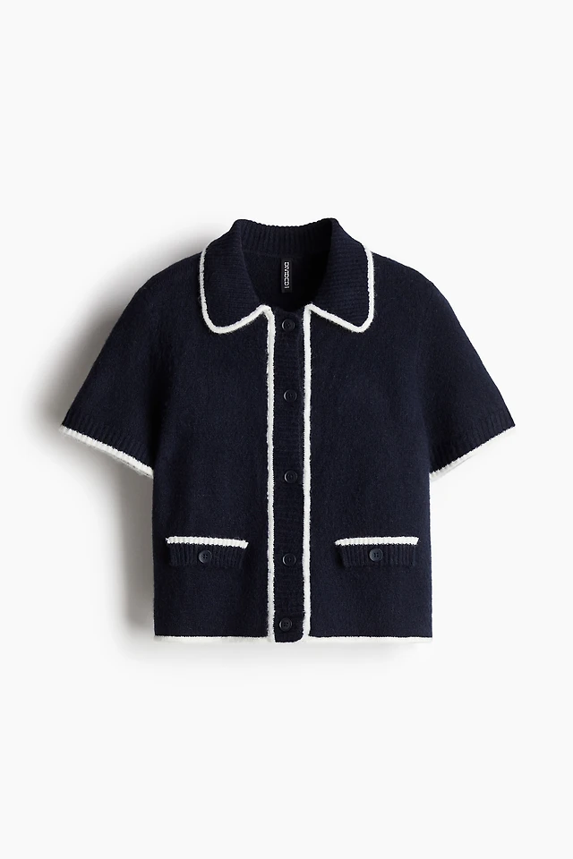Ardene V-Neck Rib Cardigan in Dark Blue | Size | Polyester/Nylon | Eco-Conscious