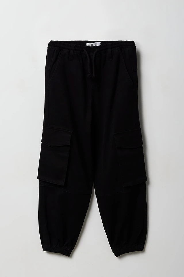 Ardene Kids Smooth Stretch Cargo Joggers in Black | Size Small | Polyester/Elastane