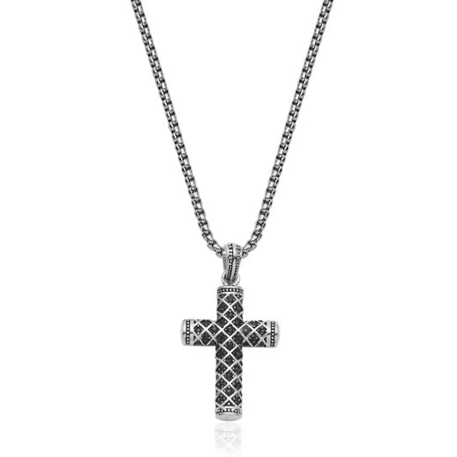 SteelX Stainless Steel 24" Cross Pendant with Black Cubic Zirconia