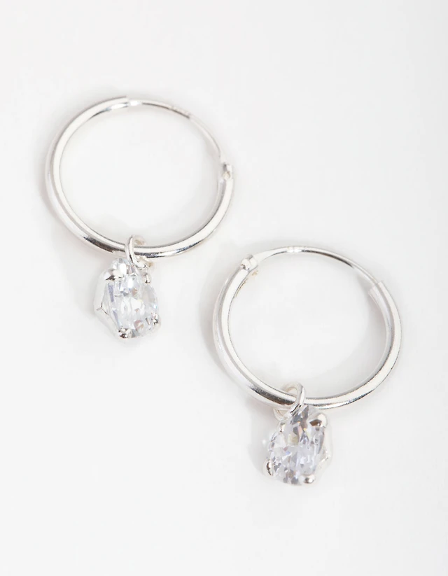Sterling Silver Cubic Zirconia Heart Hoop Earrings
