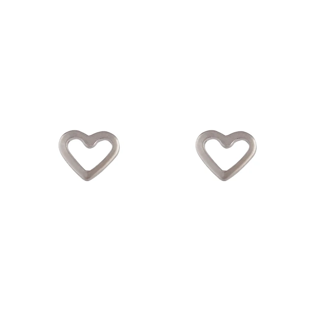Diamond Accent Mini Heart Frame Stud Earrings in Sterling Silver