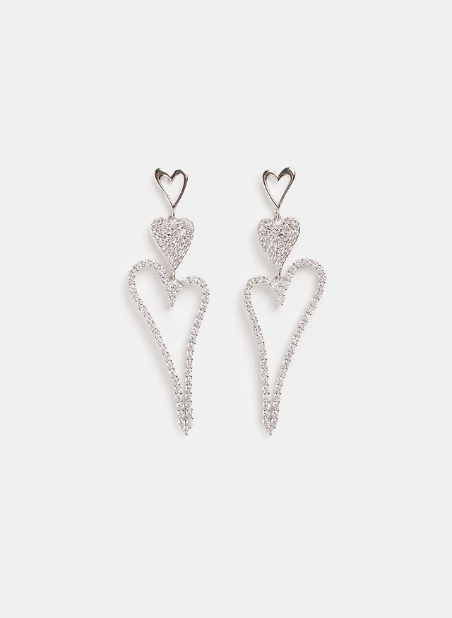 Diamond Accent Linear Double Heart Stud Earrings in Sterling Silver
