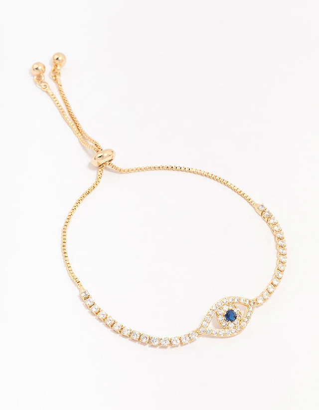 Gold Plated Brass Crystal Large Evil Eye Bracelet