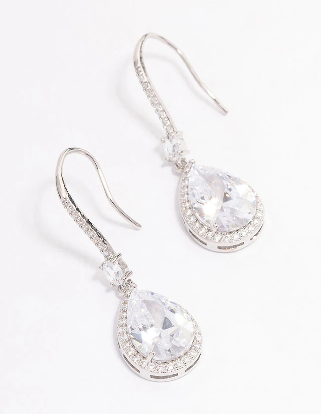 Silver Pearl & Cubic Zirconia Drop Hook Earrings