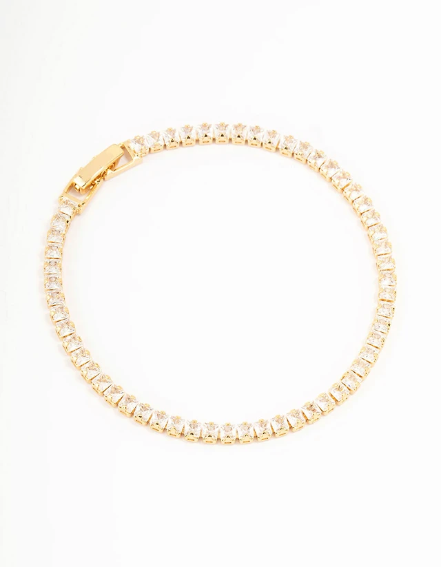 Gold Plated Cubic Zirconia Baguette Tennis Bracelet