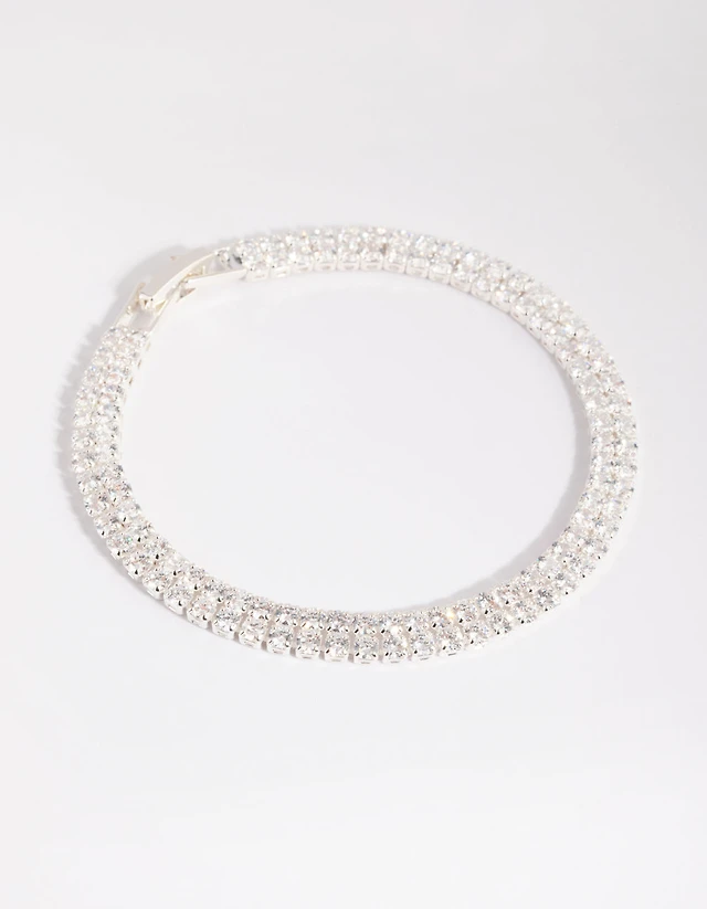 Silver Cubic Zirconia Layered Cup Chain Tennis Bracelet