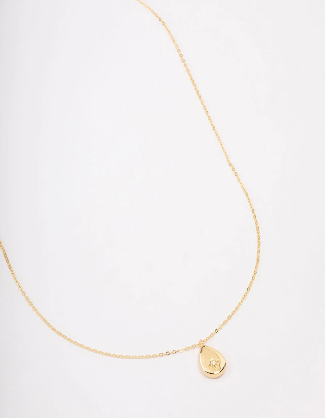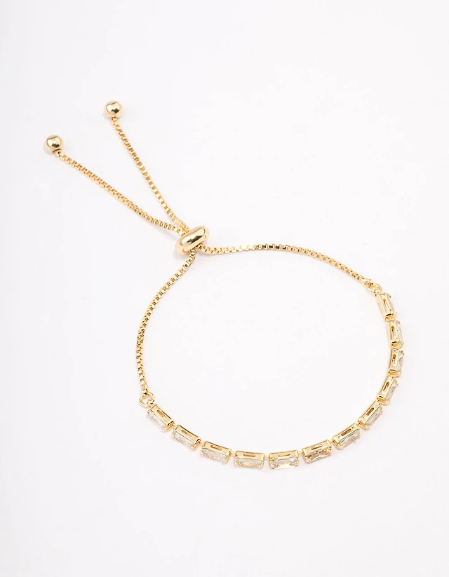 Waterproof Gold Plated Stainless Steel Cubic Zirconia Baguette & Round Pendant Necklace