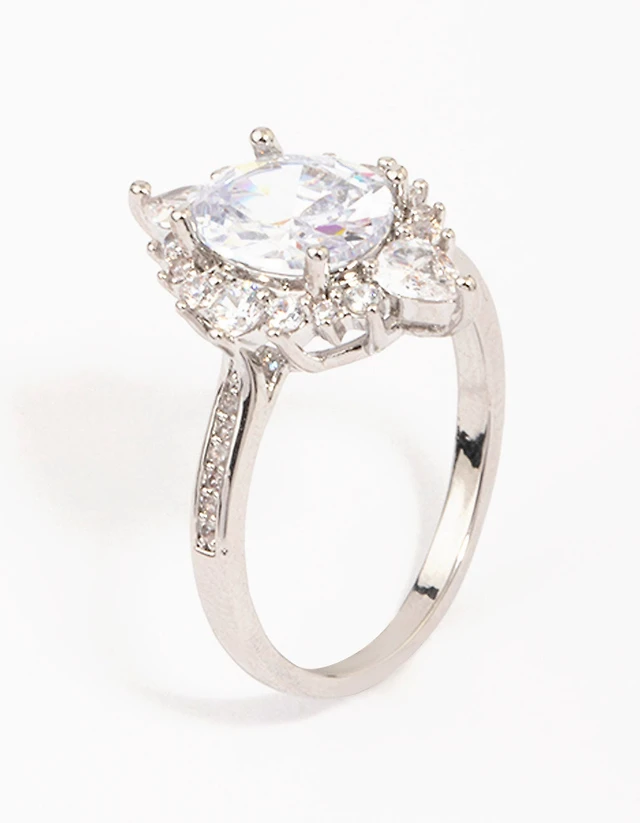 Rhodium Radiant Citrine Cubic Zirconia Ring