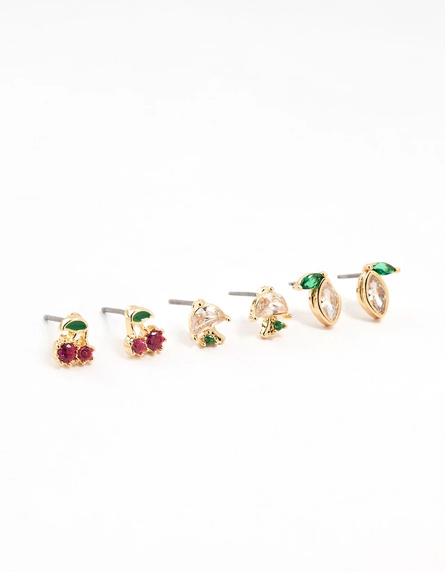 Gold Plated Surgical Steel Cubic Zirconia Heart Claw Stud Earrings
