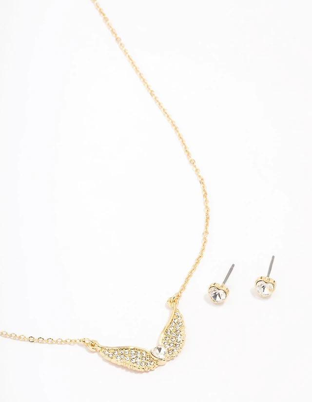 Gold Plated Diamante Butterfly Necklace & Stud Earrings Set
