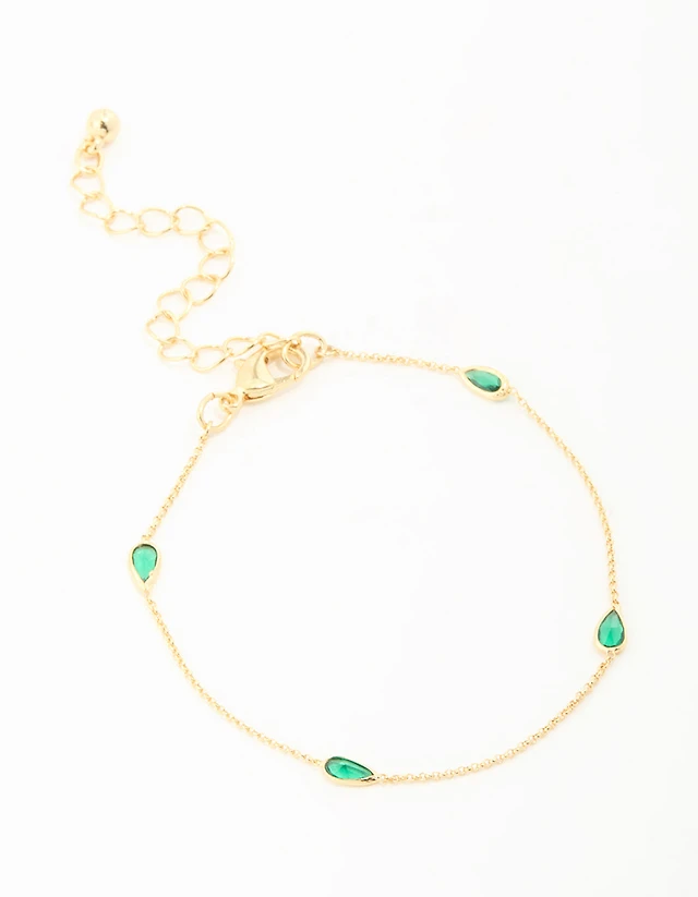 Gold Plated Green Cubic Zirconia Teardrop Bracelet
