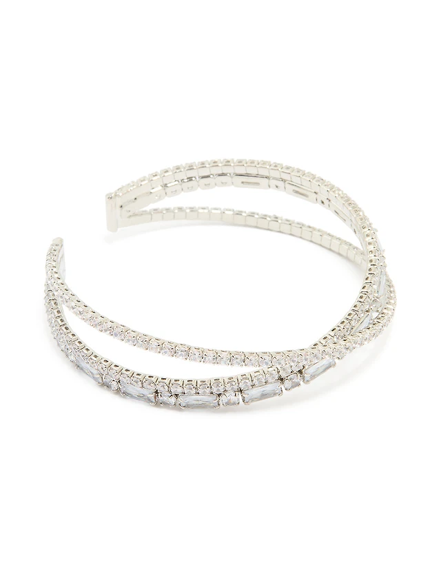 Silver Cubic Zirconia Rectangular Wrap Wrist Cuff