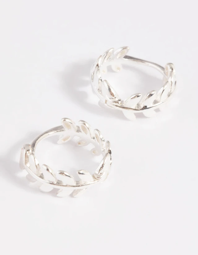 Gold Plated Surgical Steel Diamante Leaf Huggie Earrings