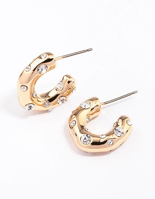 Gold Plated Brass Cubic Zirconia Pavé Pebble Stud Earrings