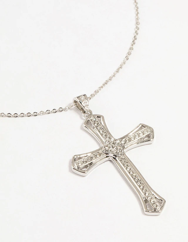 Sterling Silver Cubic Zirconia Cross Stud Earrings