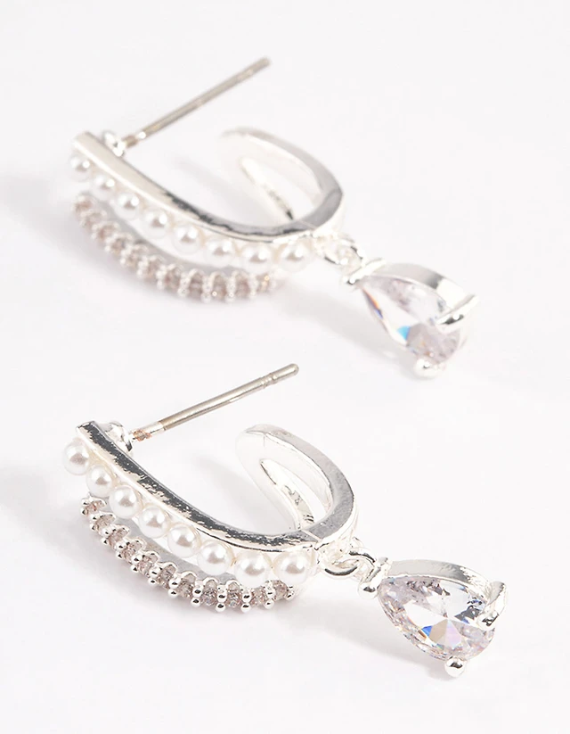 Silver Plated Cubic Zirconia Pearl Drop Earrings