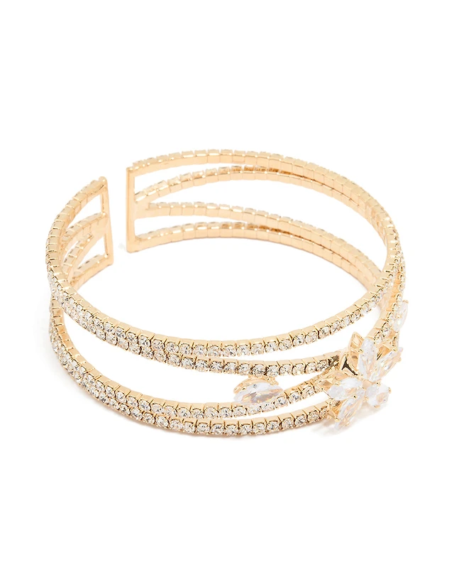 Gold Cubic Zirconia Mixed Marquise Floral Hair Crown
