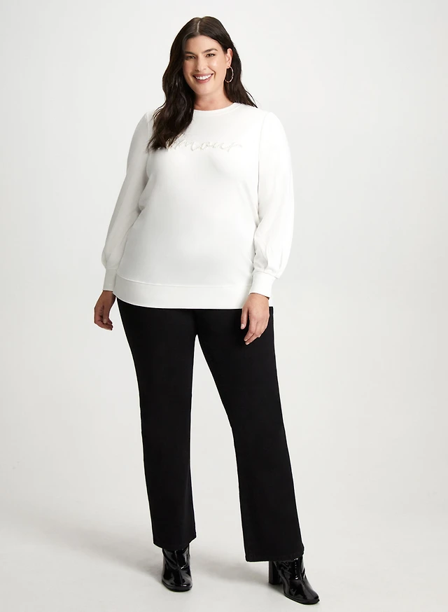 Beaded Sweater & Rhinestone Slit Pants