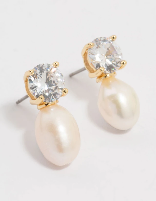 Gold Plated Round Cubic Zirconia & Chain Earrings 5-Pack
