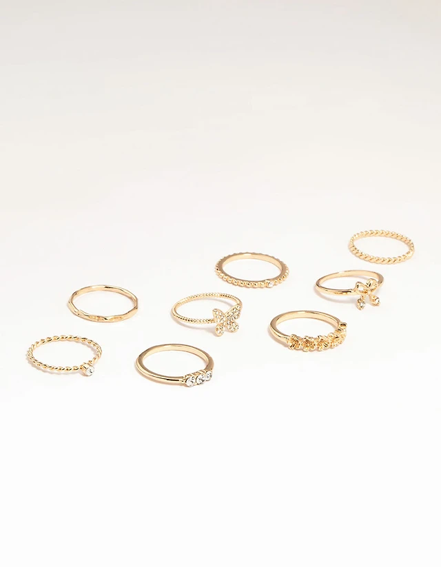 Gold Plated Diamante Butterfly Necklace & Stud Earrings Set