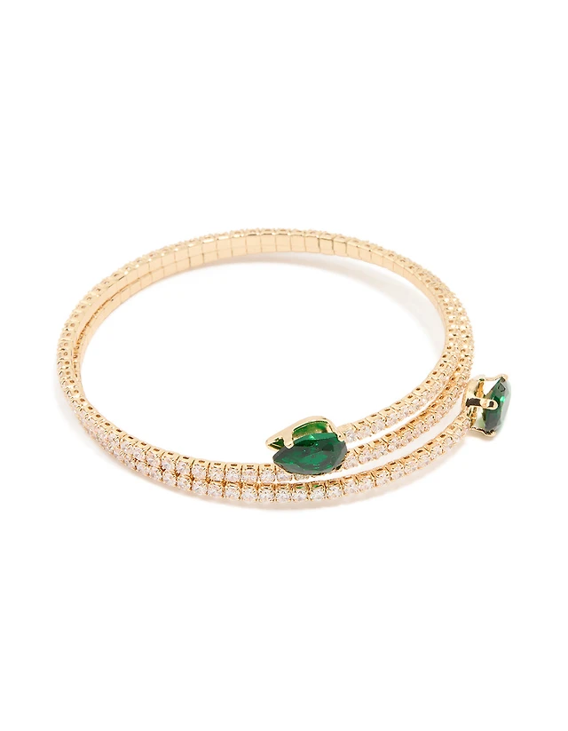 Gold Green Cubic Zirconia Wrap Around Wrist Cuff
