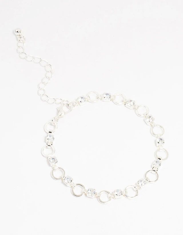 Silver Cubic Zirconia Round Graduating Earrings & Tennis Bracelet Set